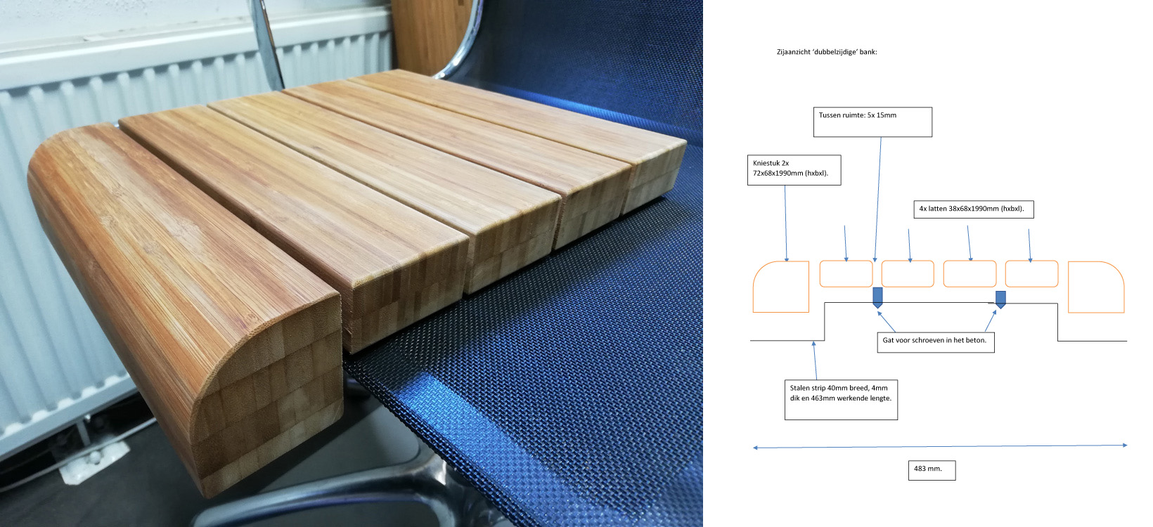 Tegenwoordig gebruiken wij voor de zittingen op onze banken nagenoeg alleen nog bamboe. Het is een solide en duurzaam alternatief voor tropisch hardhout.